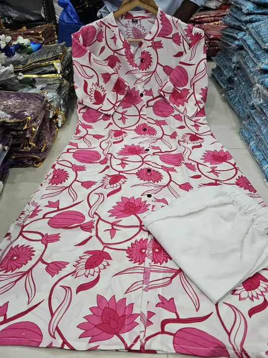 SUMMER SPECIAL PINK RAYON COTTON CO-ORD SET