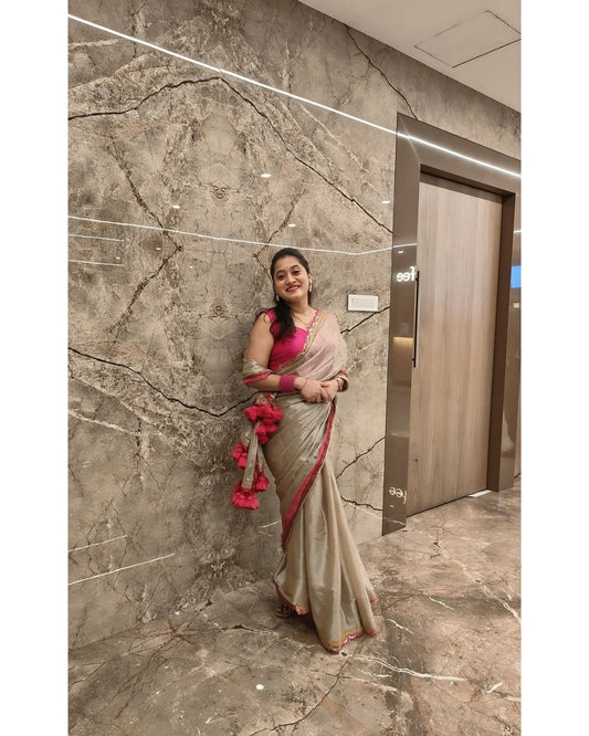 Embroidered Satin Beige Saree Online