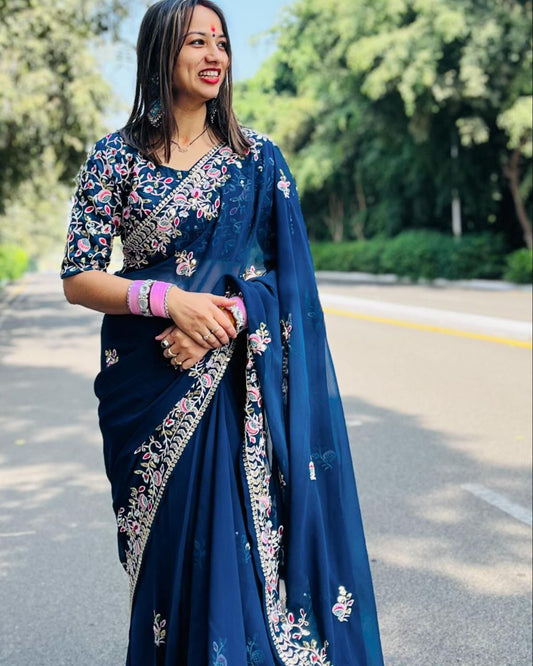 Georgette Sequence Embroidery Saree